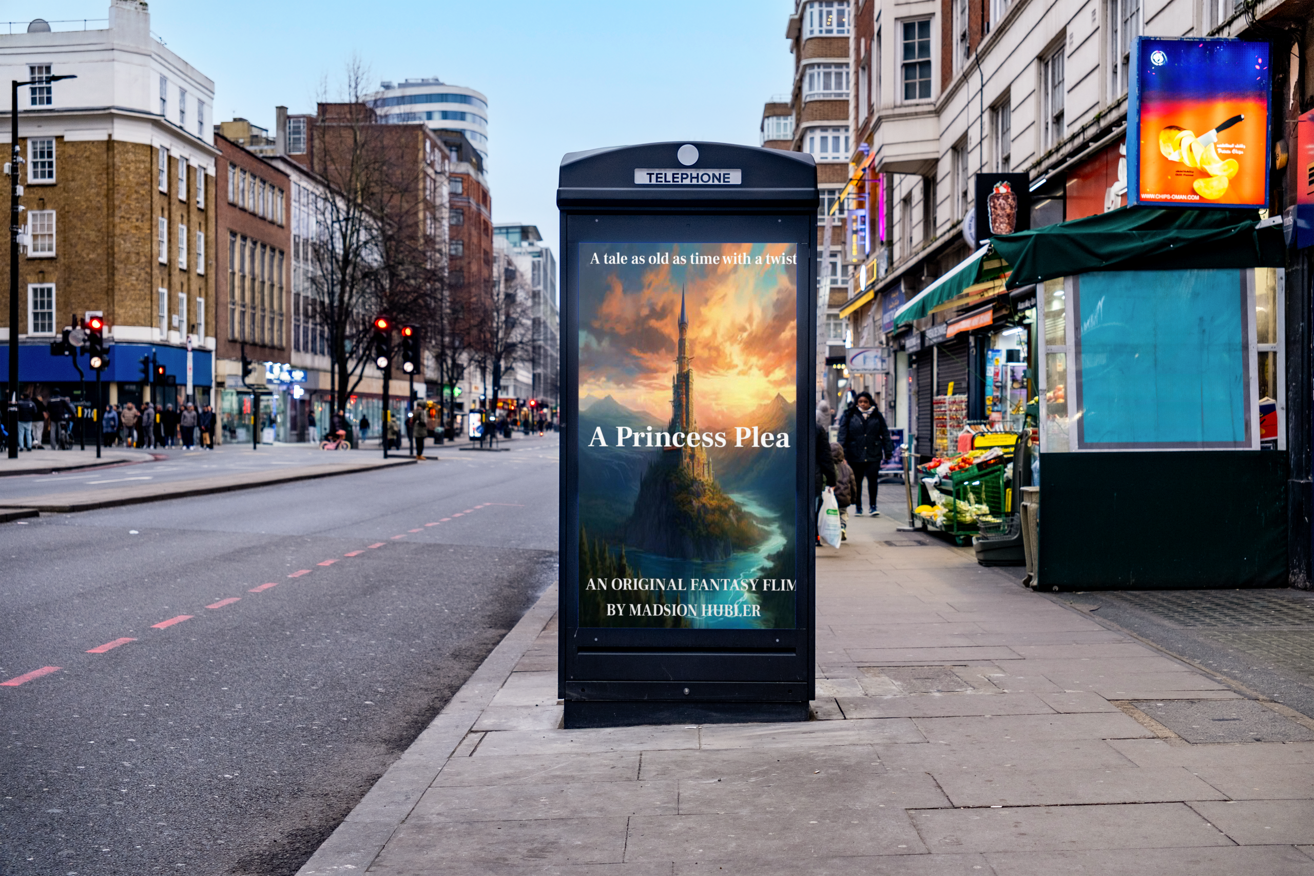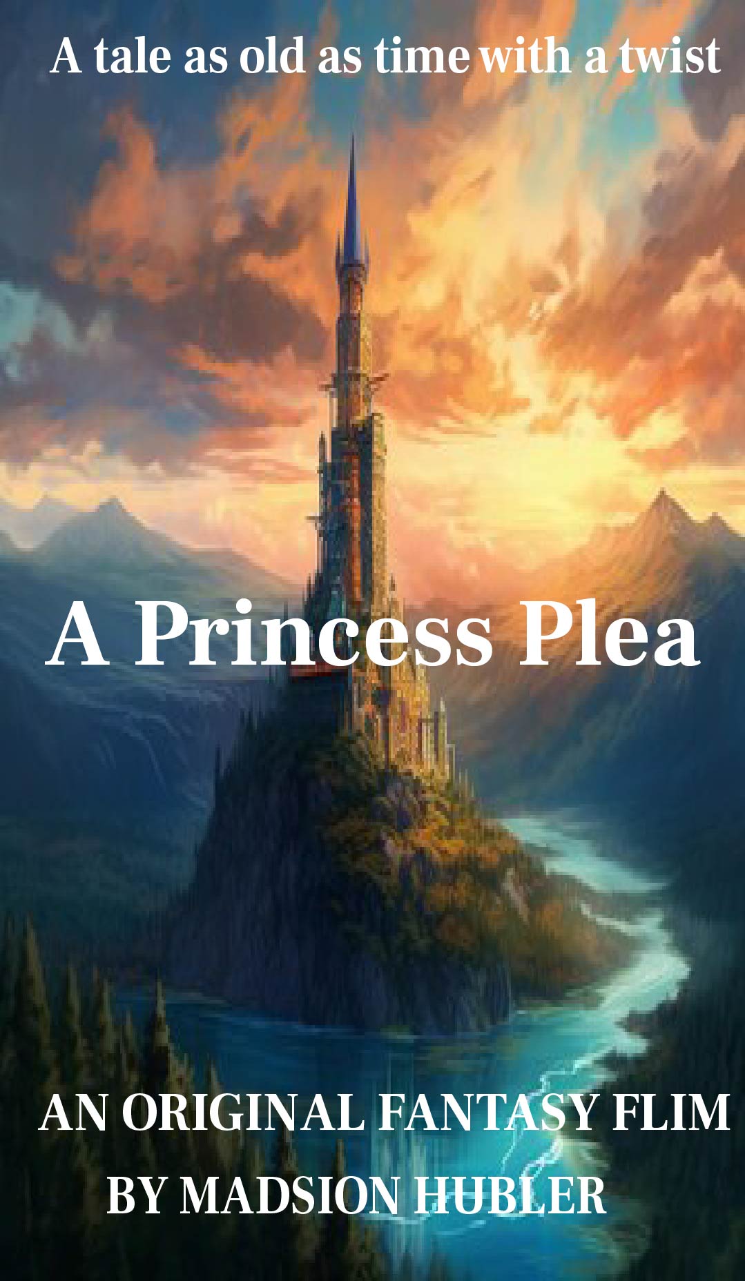 Short Flim Poster: For this project we got to pick a short film from the website Kickstarter and make a poster about it and so I decided to do a poster for the short film that’s called a princess play and this is a really fun project for me because I love fairy tales princesses dragons princes everything the whole shebang and I got really excited to do it and I guess the creative process behind it was when I think about fairy tales I think about castles and I decided to put a castle as a background for the poster and I think it turned out really well and I absolutely love it.