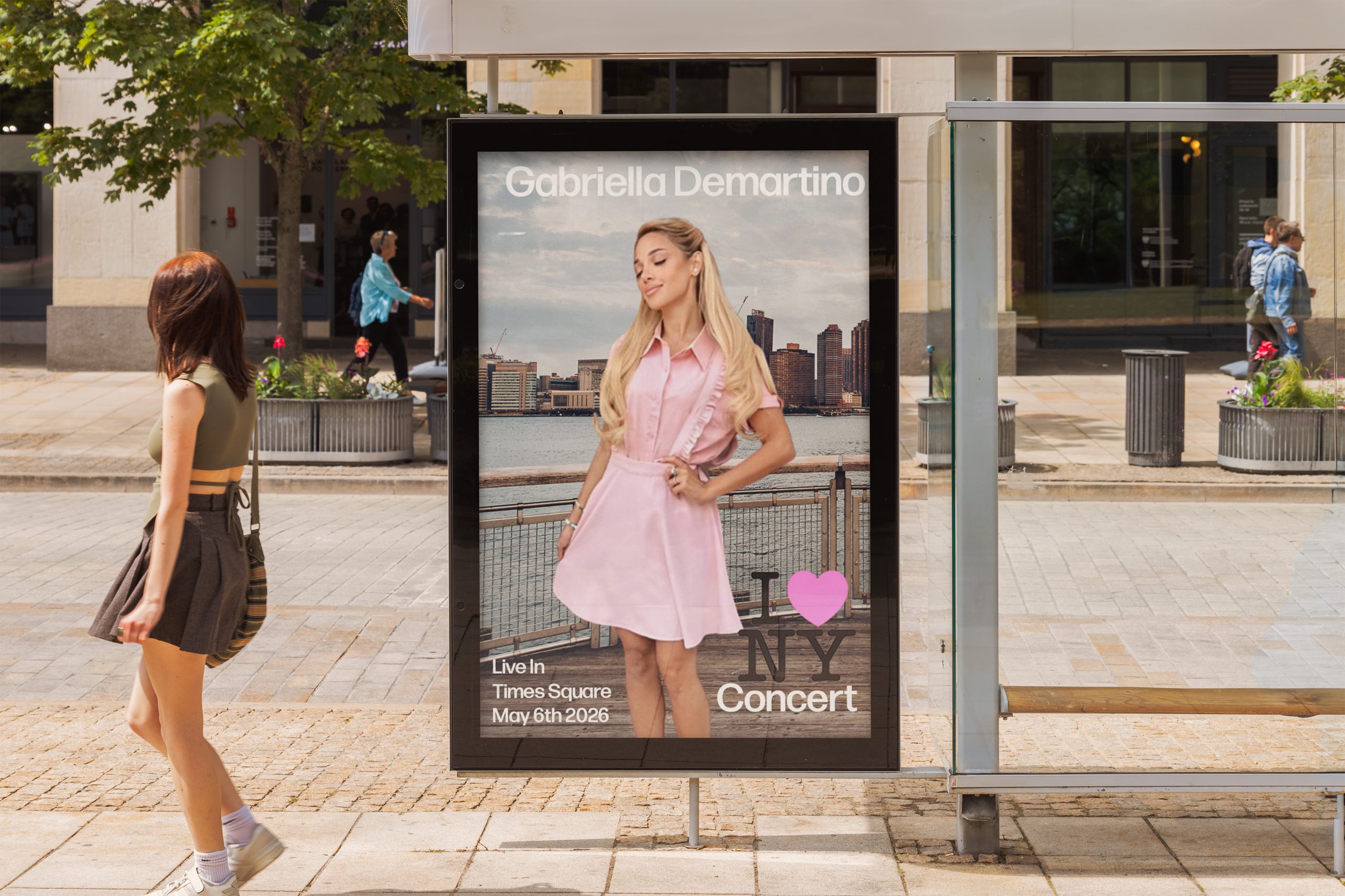 Gabi Poster  This project I decided to do a poster for Gabriella demartino which is who is Nikki’s sister and also has a YouTube channel and I absolutely love her and our personality so I did a I made a poster for a fake concert for her in New York since she loves new American travels there all the time and I stuck to the outfit and the color that the outfit is which is Pink and I added pink and the NY logo and I absolutely love how it turned out and that’s the creative process behind it.